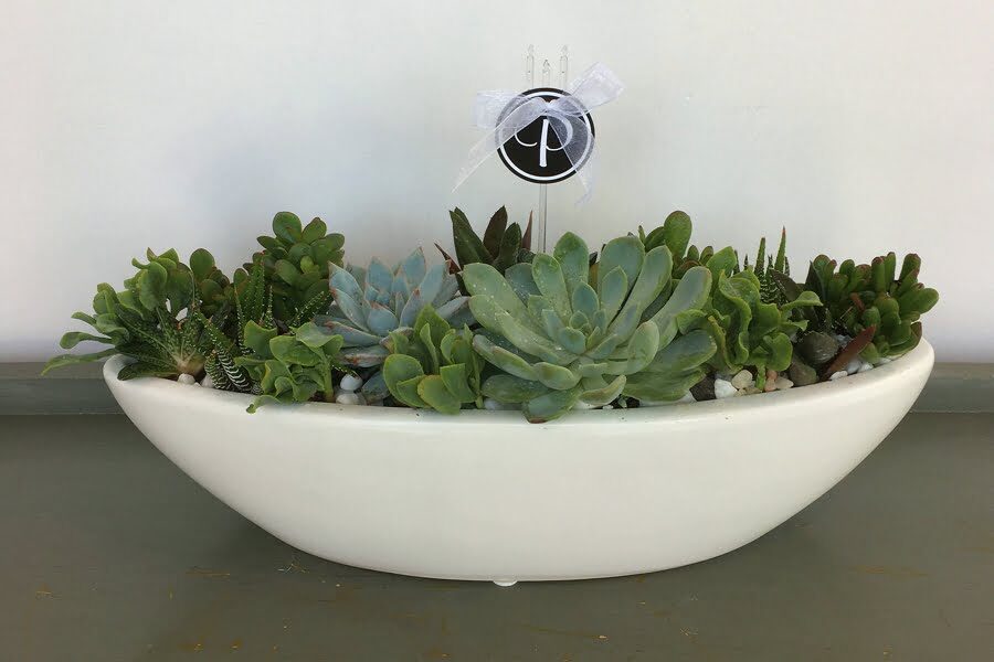 Get ready to party in style! This mix of different species of the succulent family is placed in a white ceramic boat, which will decorate not only your home but also your stylish party tonight. Succulent combinations may vary depending on stock availability.